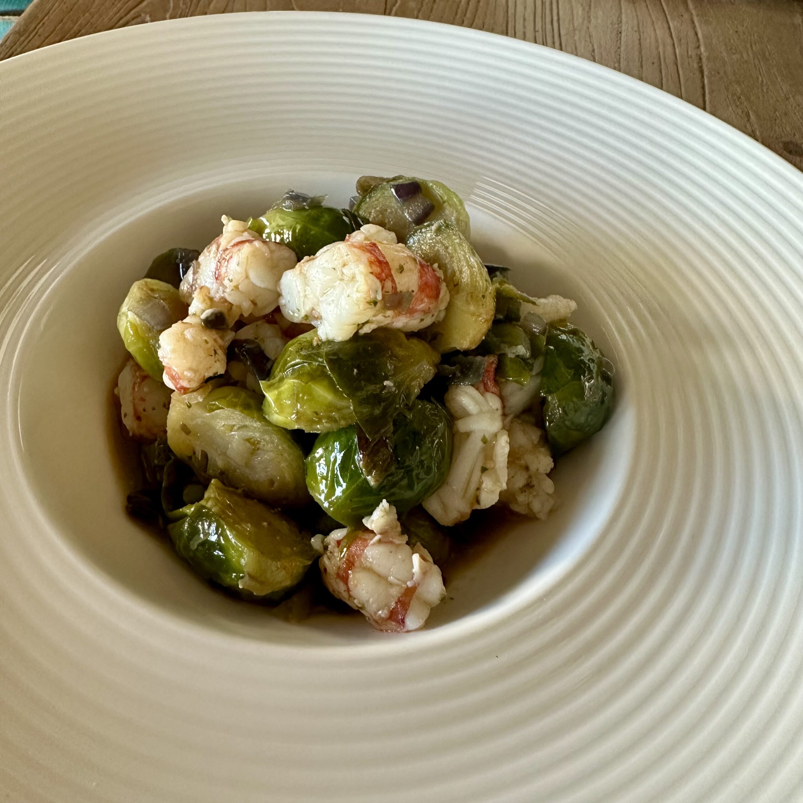 Las coles de Bruselas no dejan indiferente. O las amas o las odias. Pero si quieres reconciliarte con ellas (o hacer que hasta el más reacio repita plato), prueba esta receta con langostinos. El mar y la tierra juntos, en un plato que pide pan.