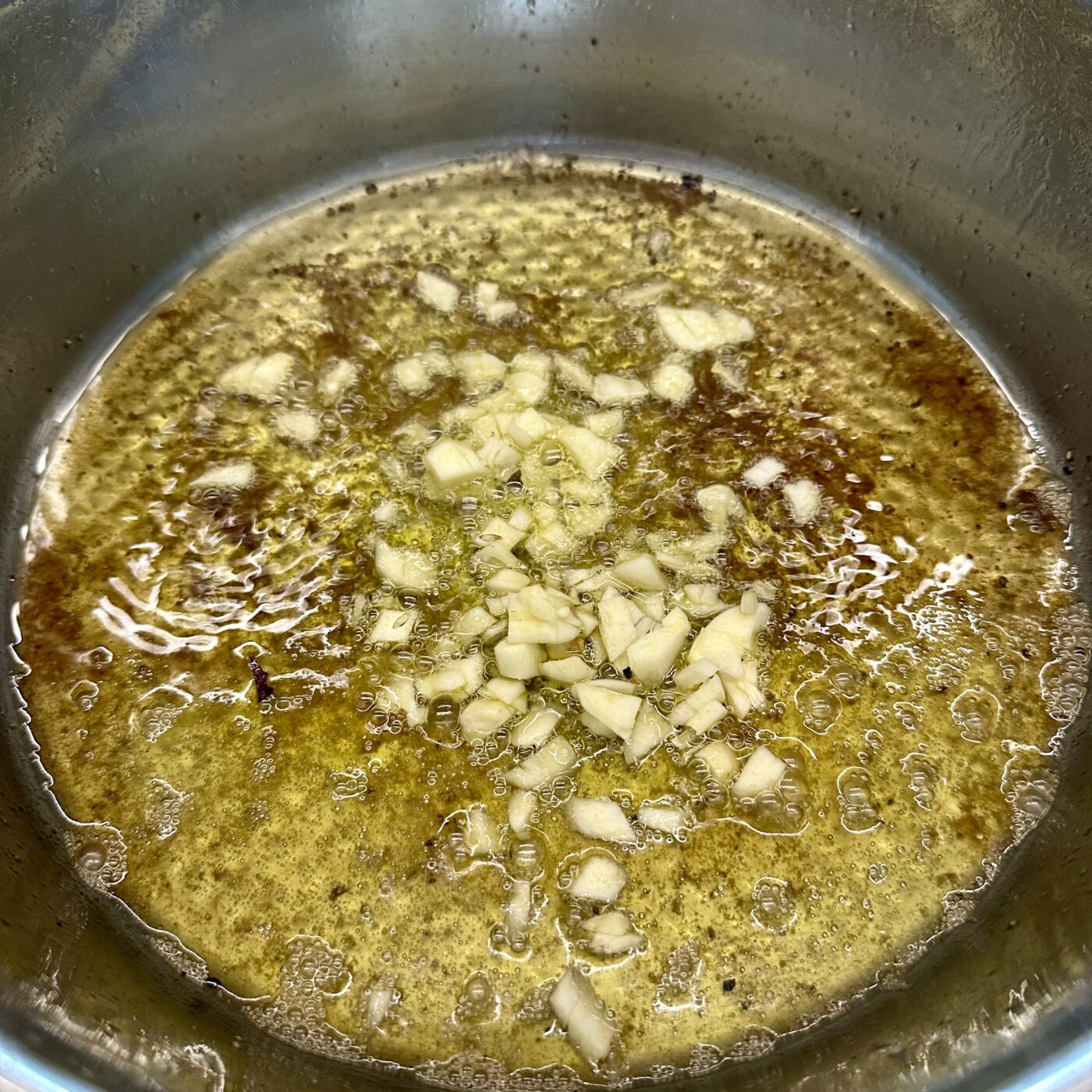 En el mismo aceite, damos una vuelta al ajo picado hasta que empiece a dorarse.