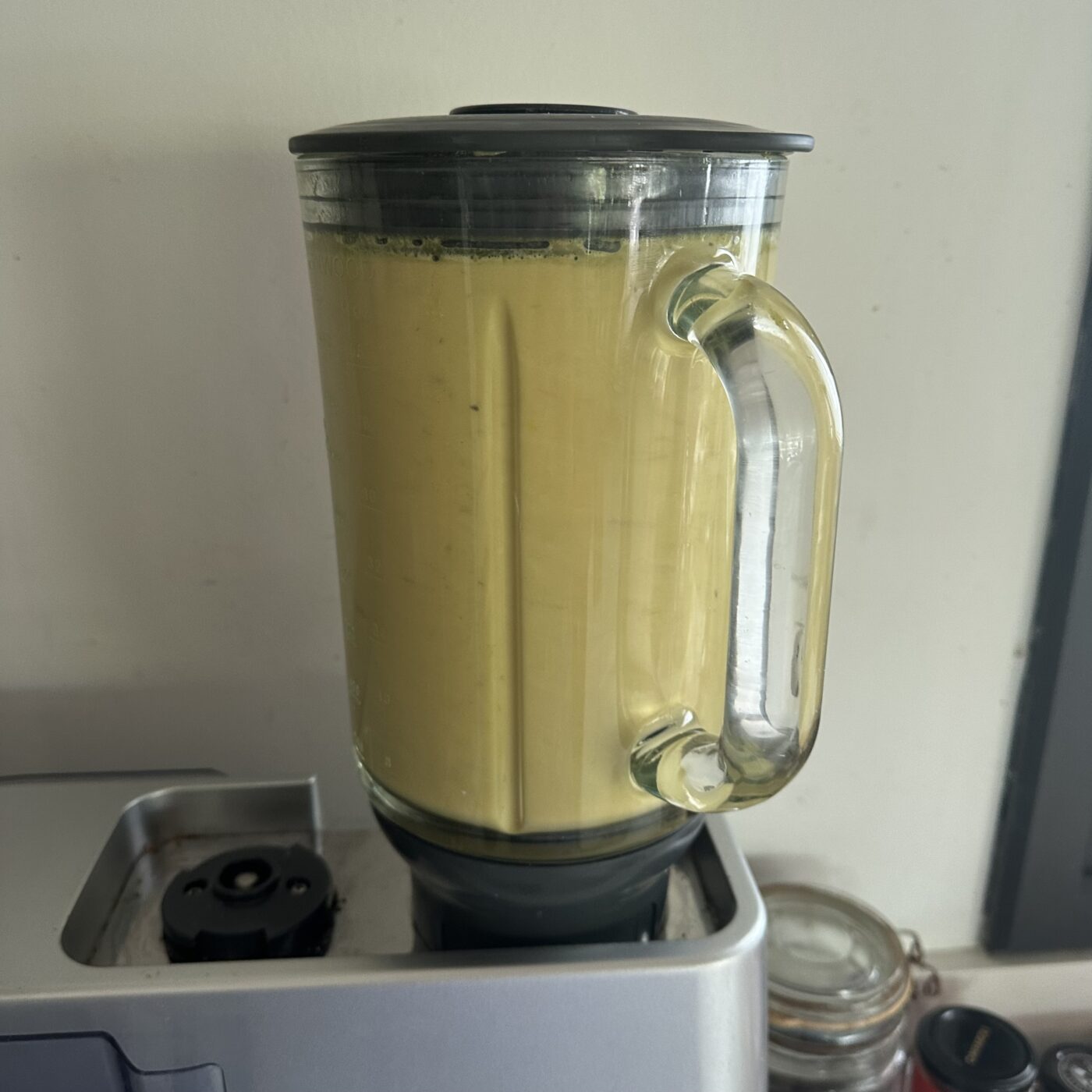 Pasamos por la batidora el fondo de cocción para hacer una salsa fina y potente. Si está muy líquida, reduce un poco al fuego.