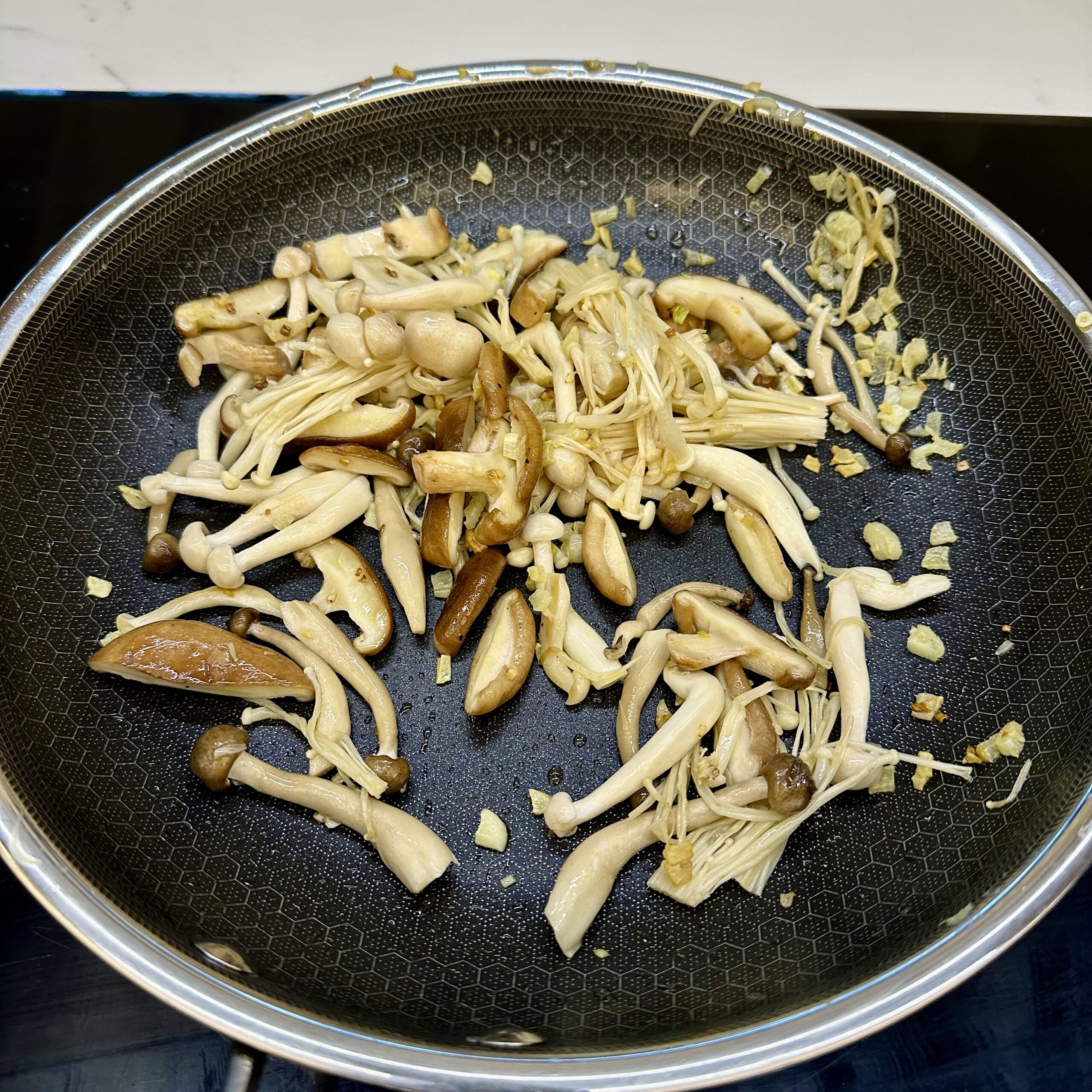 Una vez dorado el ajo, salteamos las setas con el durante 1 minuto.