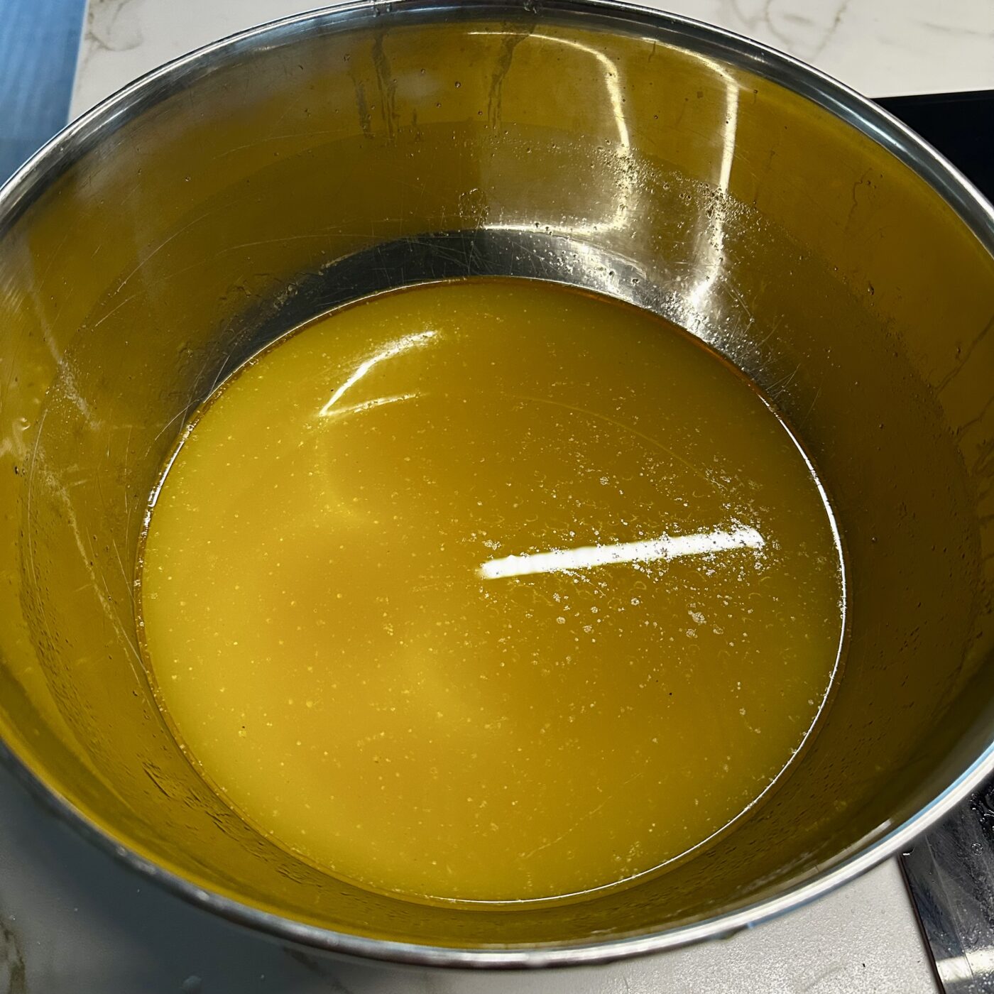 Colamos el caldo y lo reservamos.