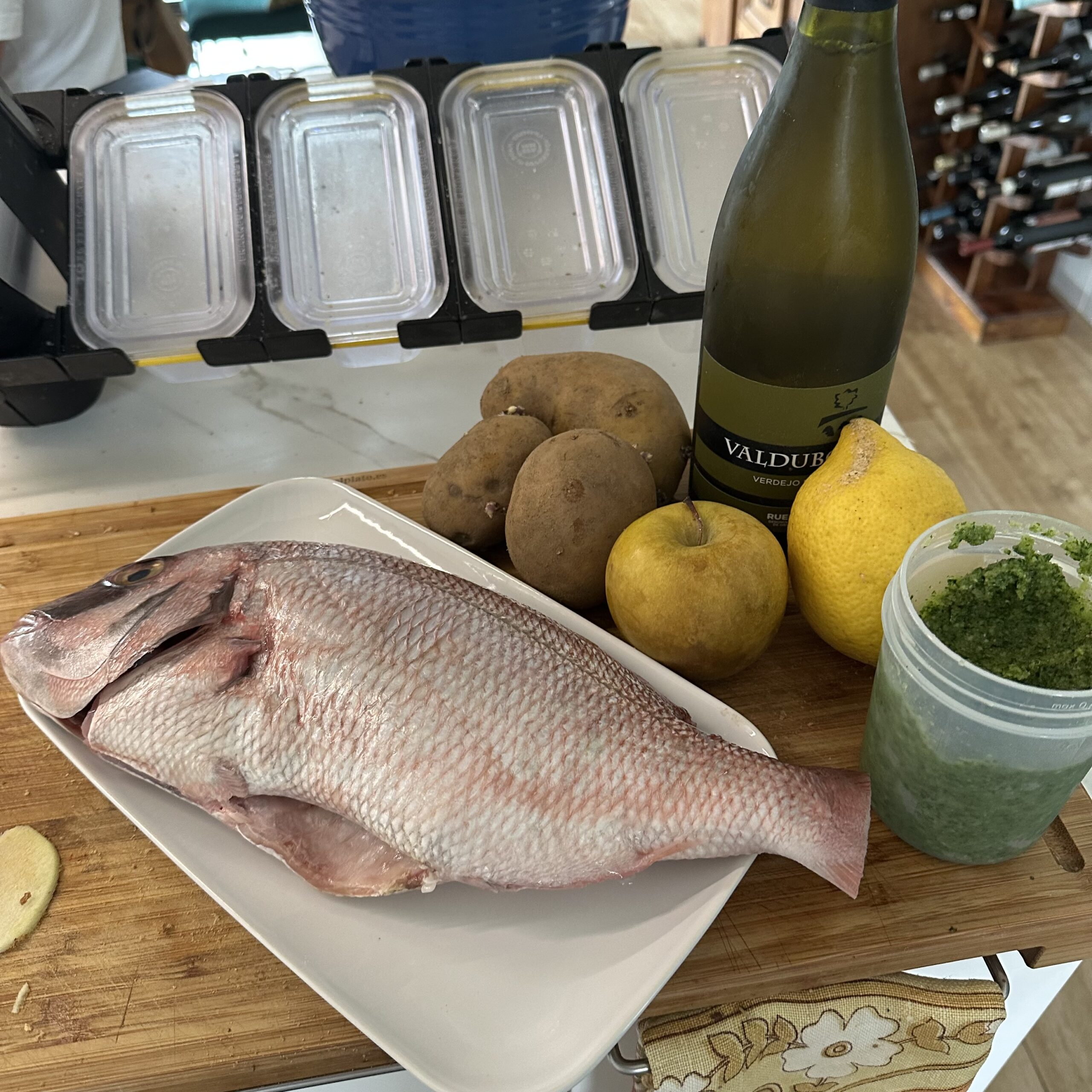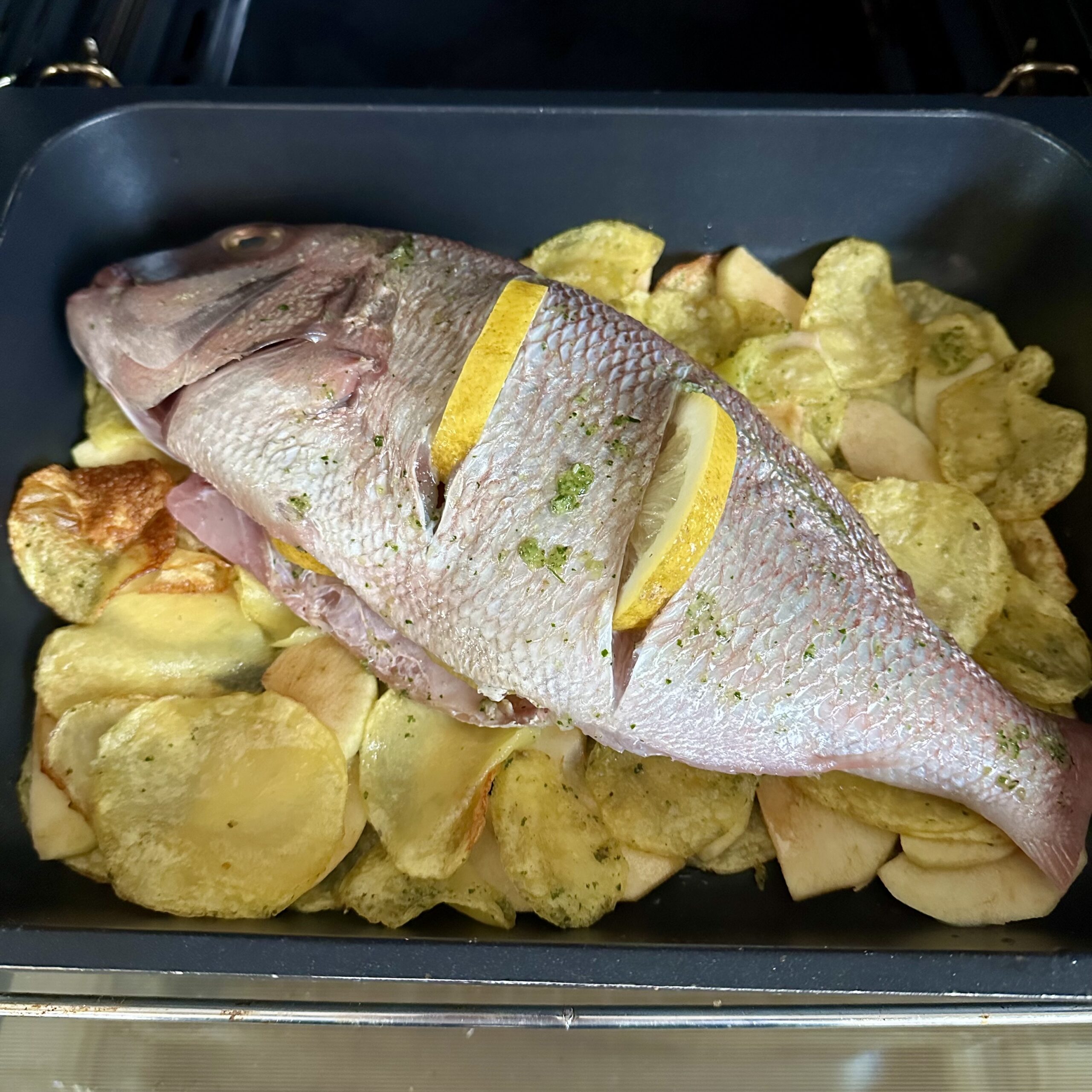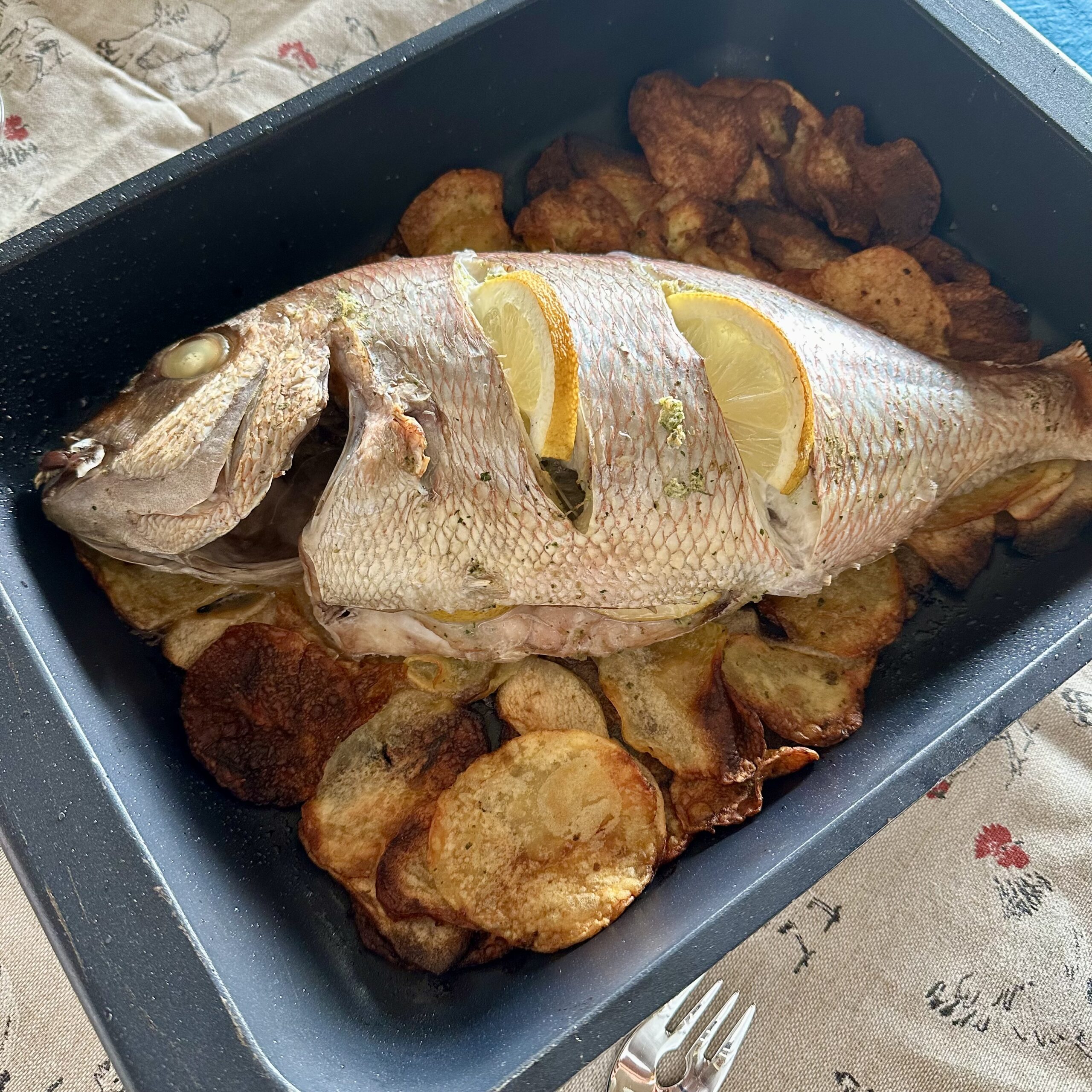 Rubiel al horno con patata y reineta