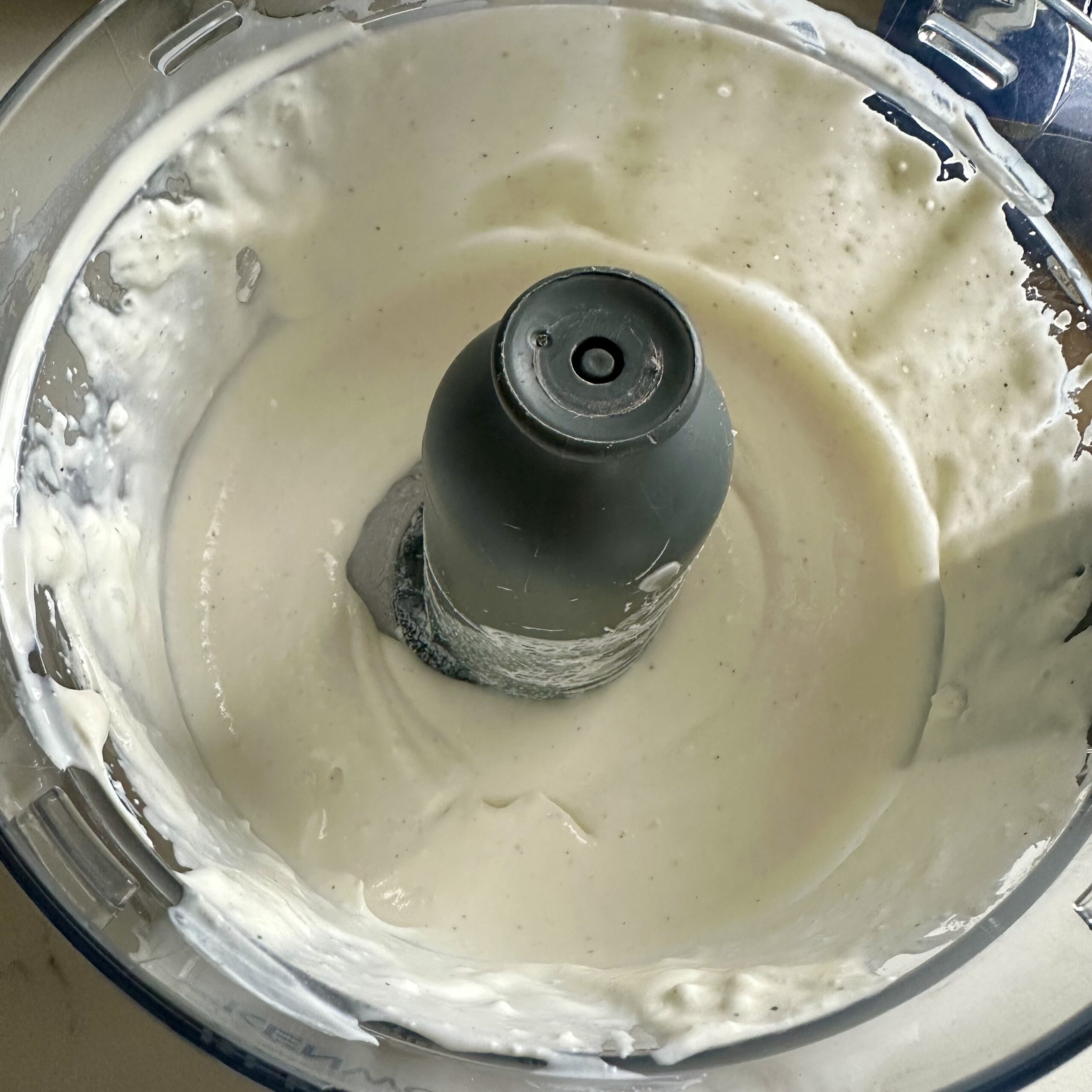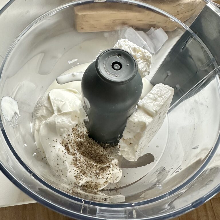 En un procesador, ponemos el queso feta, el yogur y la nata líquida.