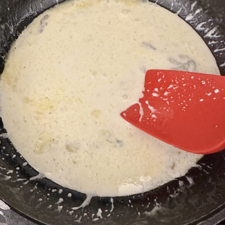 Incorporamos la nata. Removemos bien hasta obtener una salsa cremosa y densa, sin grumos.