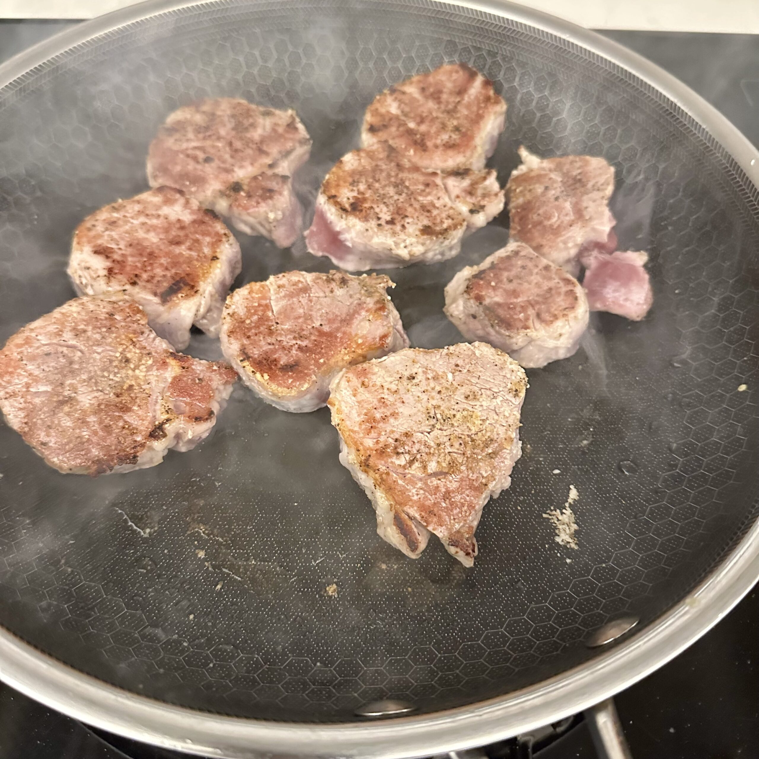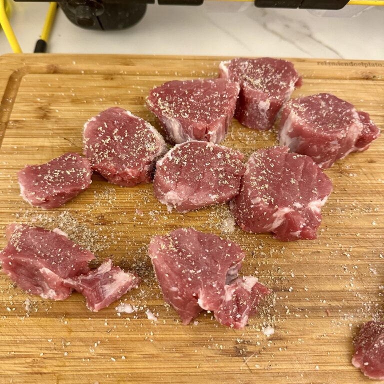 Cortamos el solomillo en medallones y lo salpimentamos.